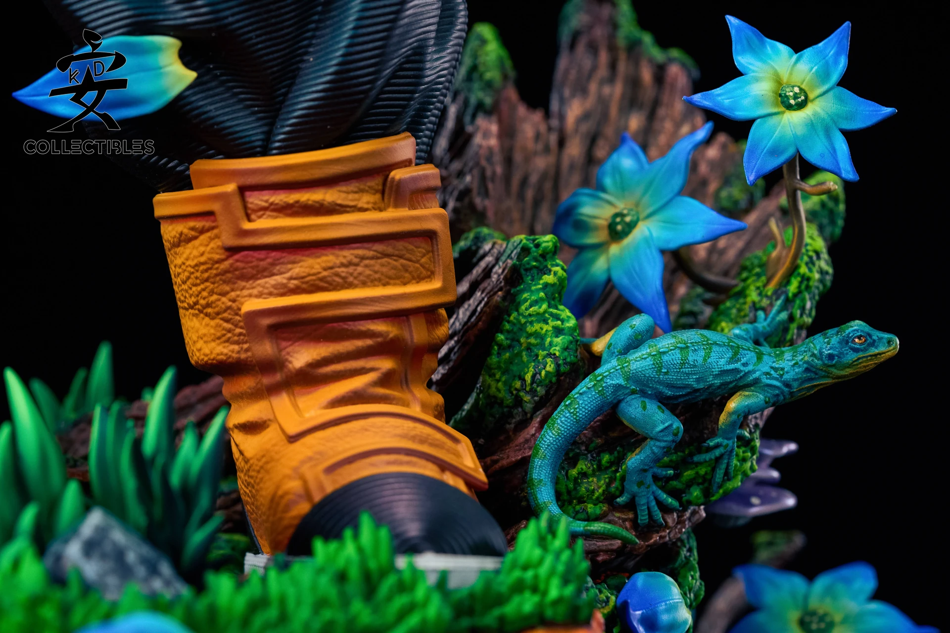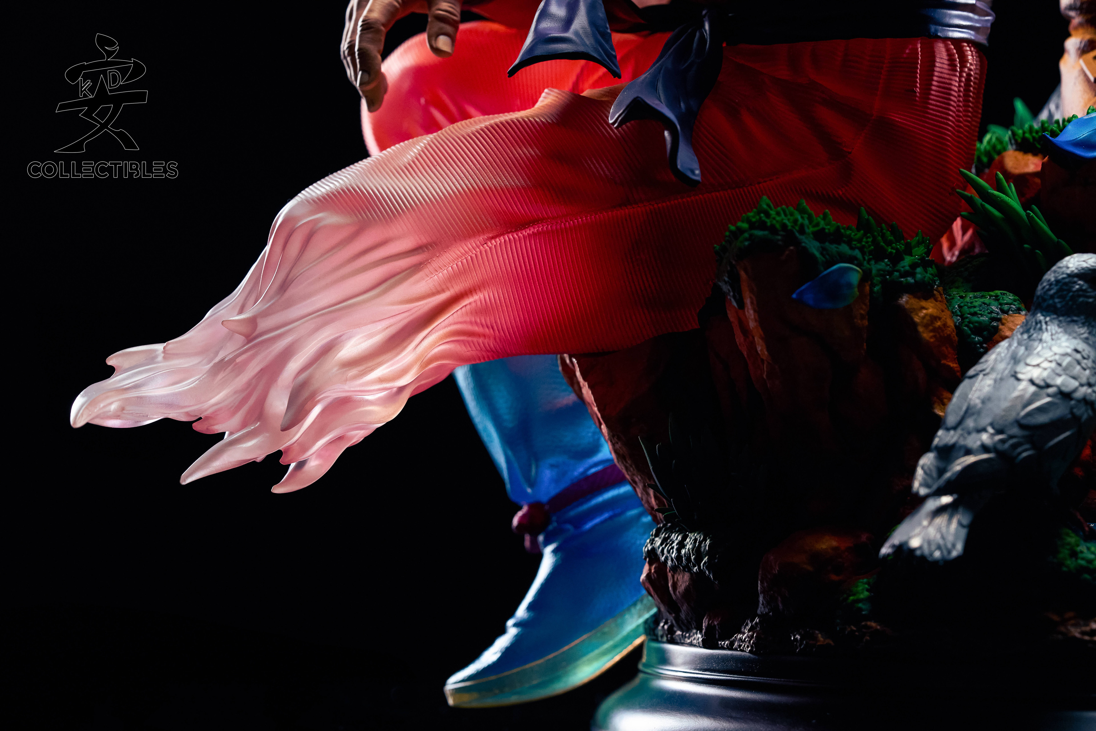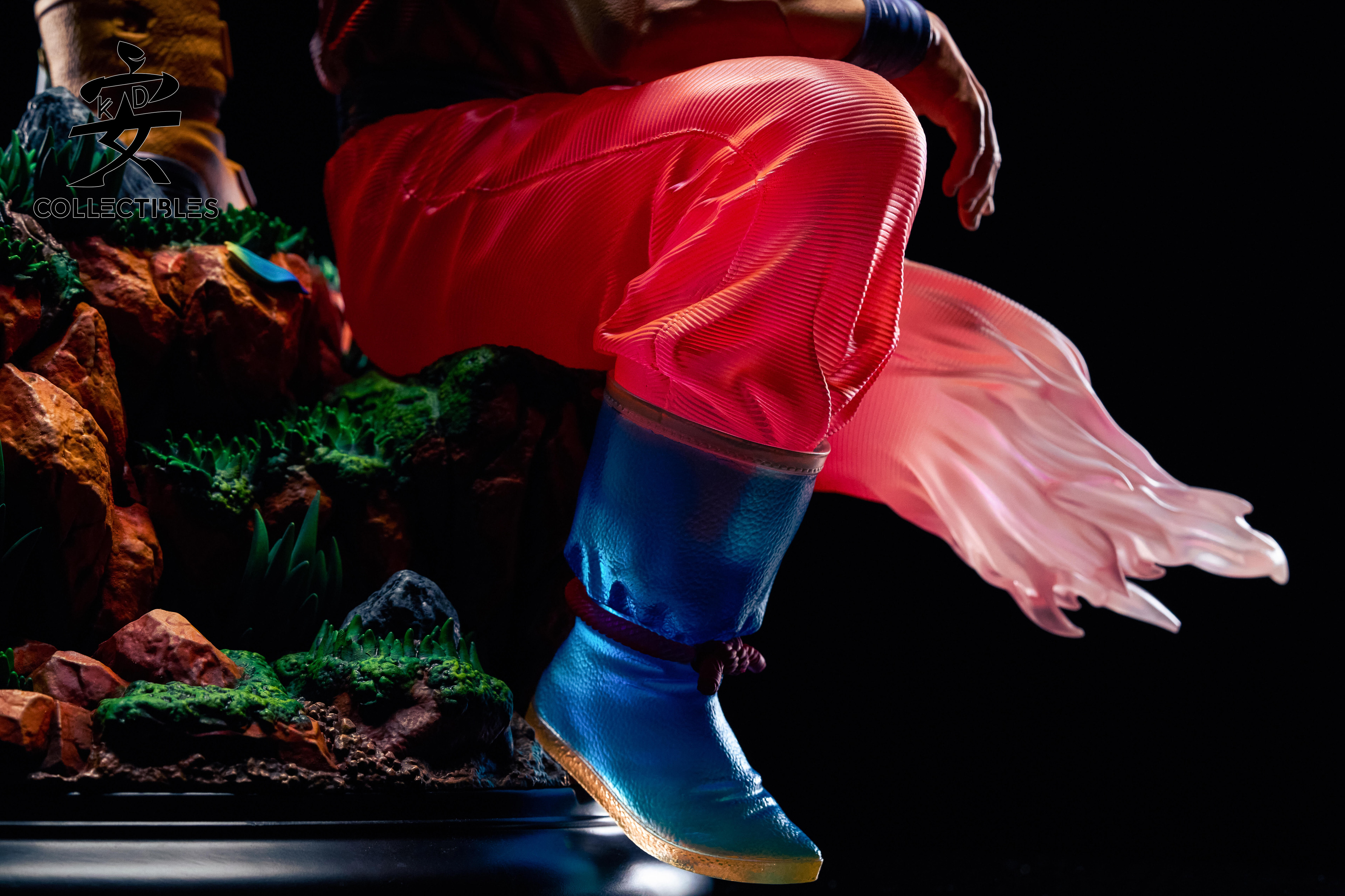 Gohan’s form was cast in transparent resin, painted with a gradual semi-translucent fade across the lower body to evoke the essence of a spirit. Light passes gently through his legs before solidifying into full color across his upper body, creating a natural transition from ethereal to physical. This subtle shift gives him a true spectral presence — not just a visual effect, but an emotional one.