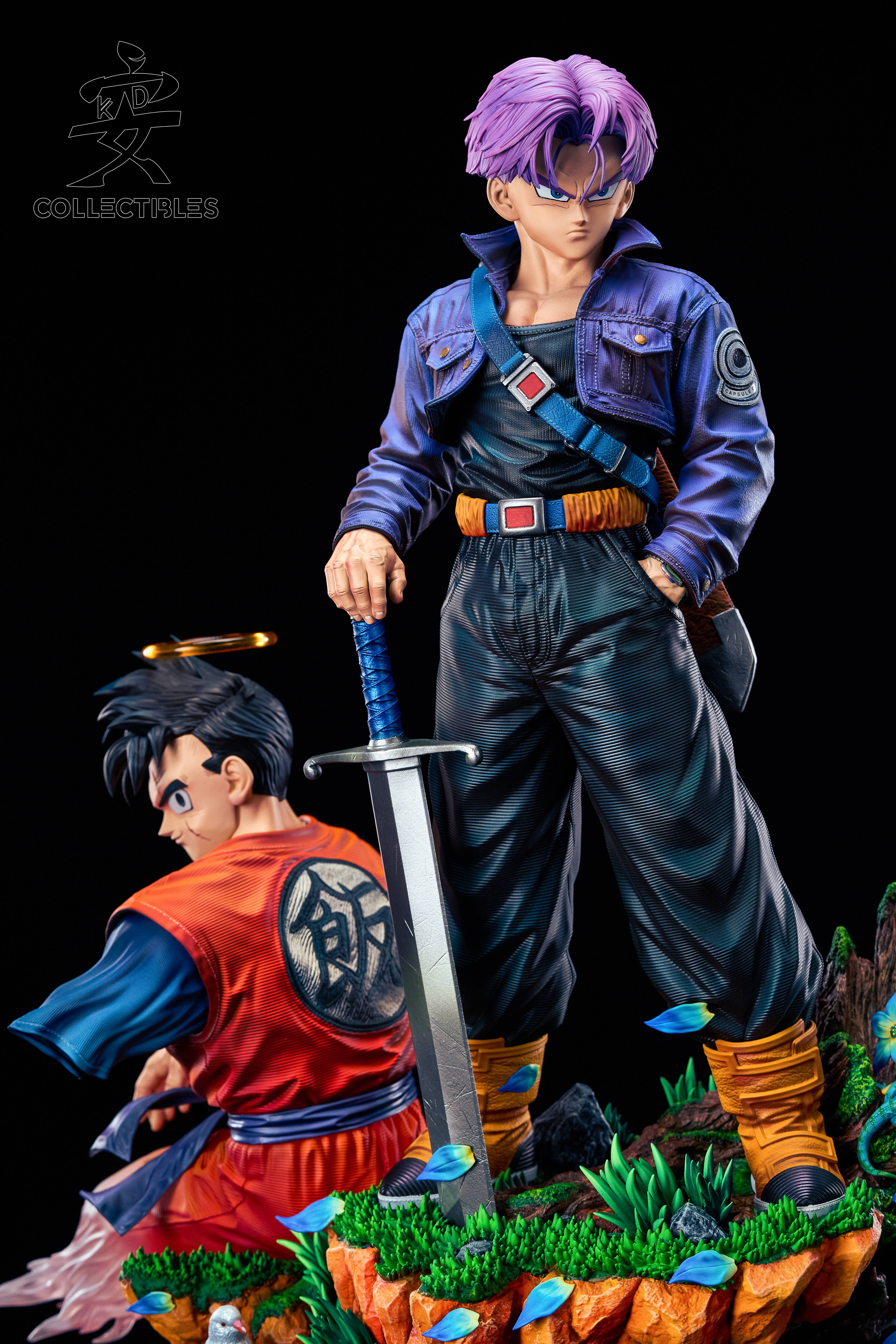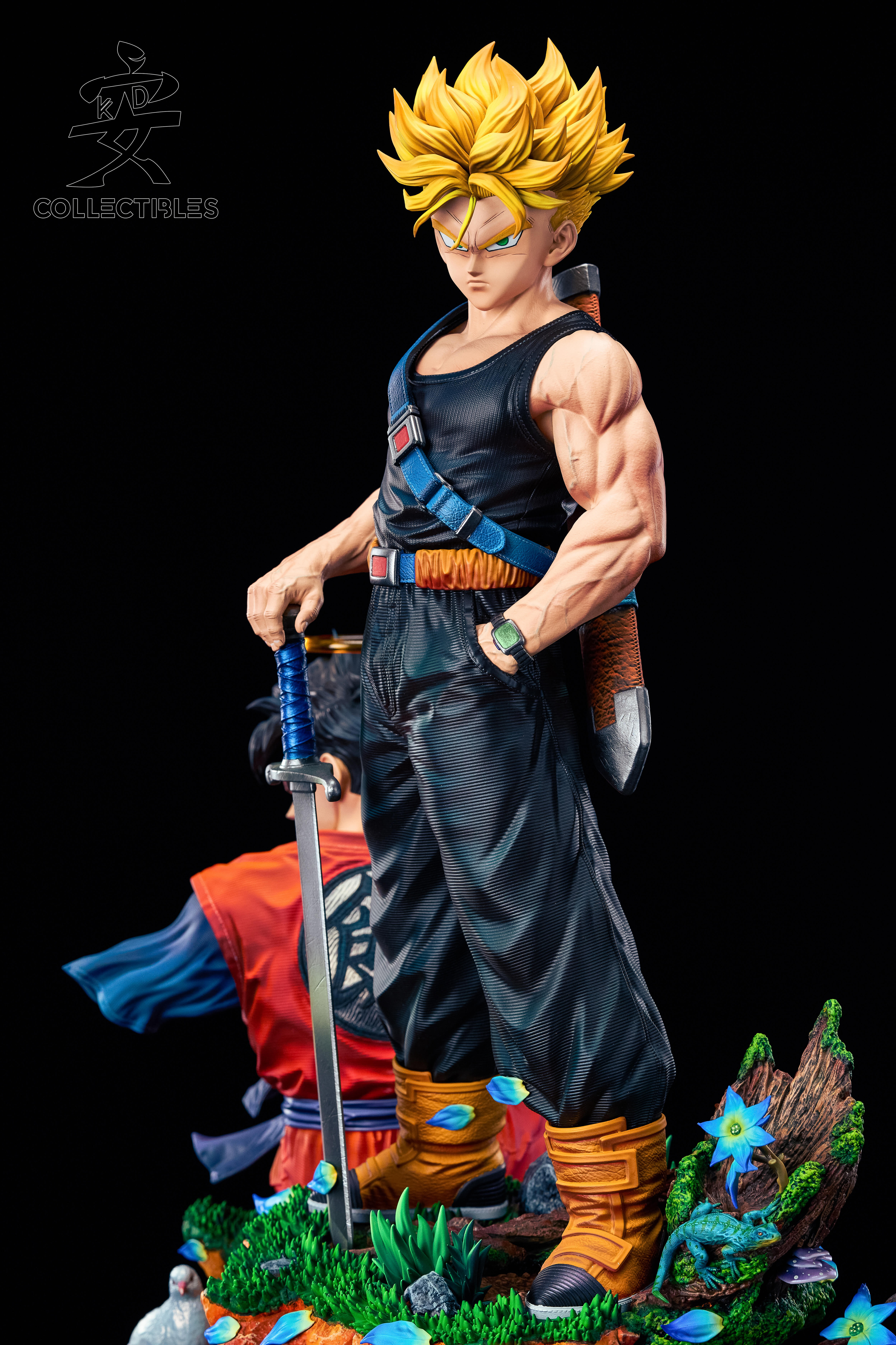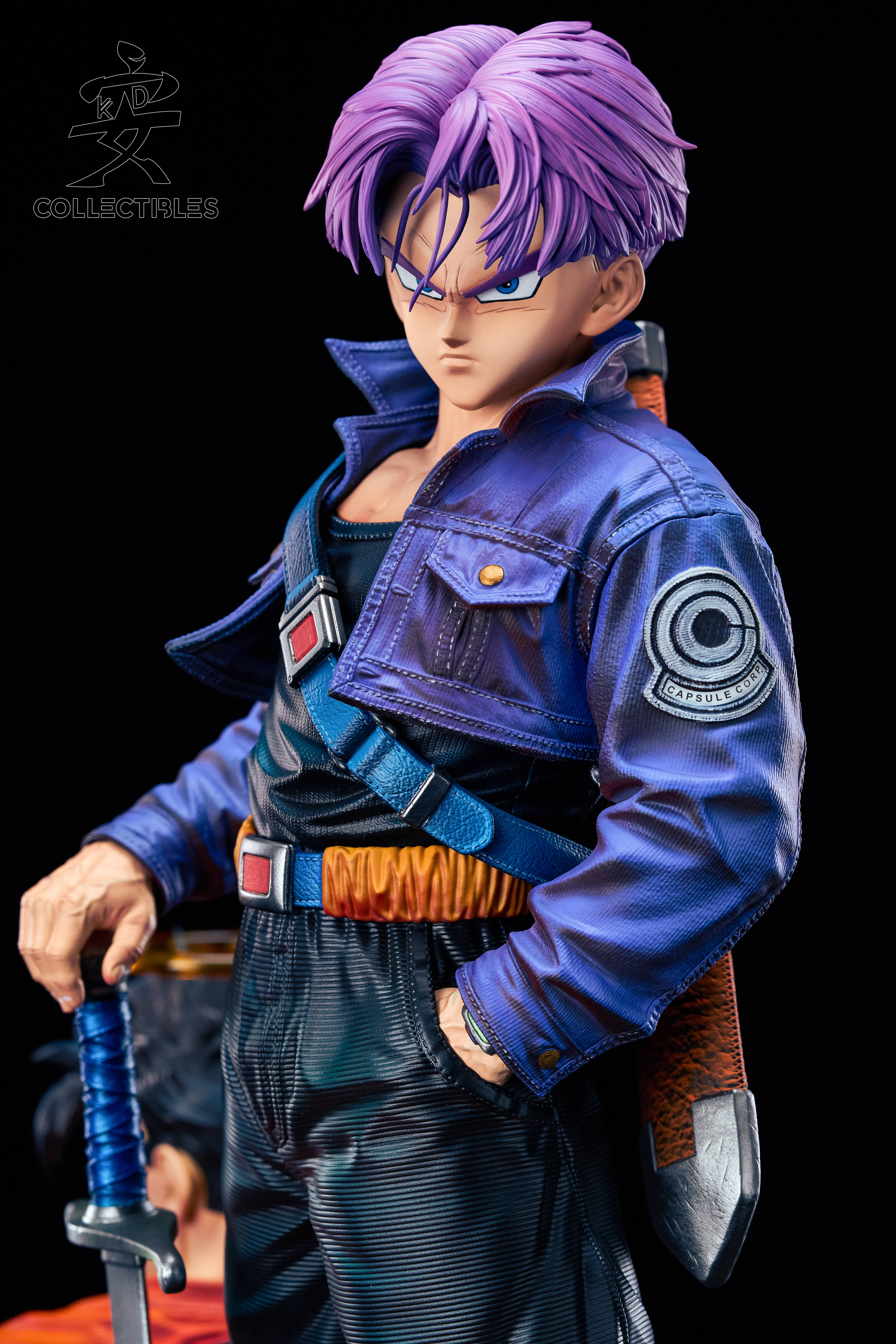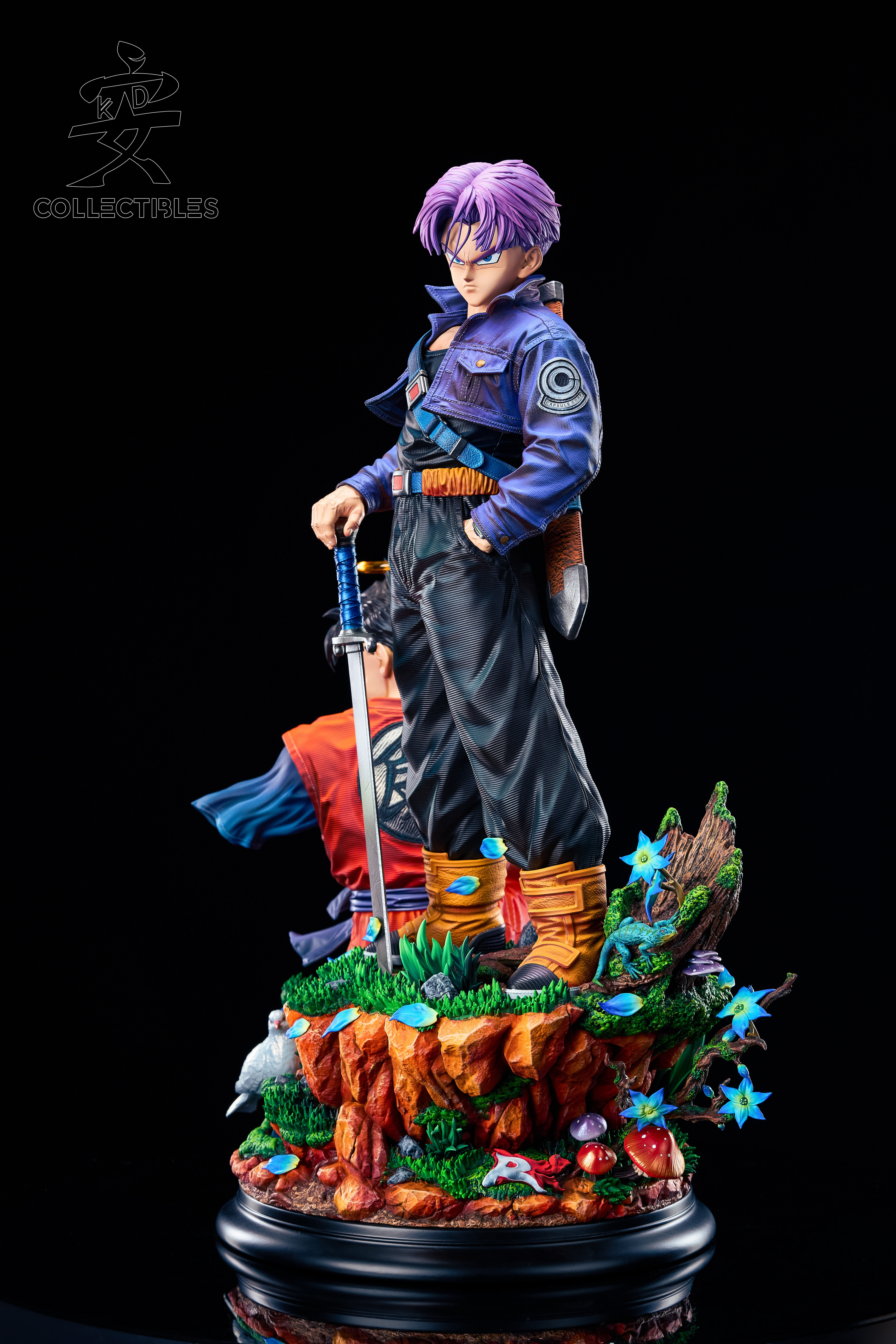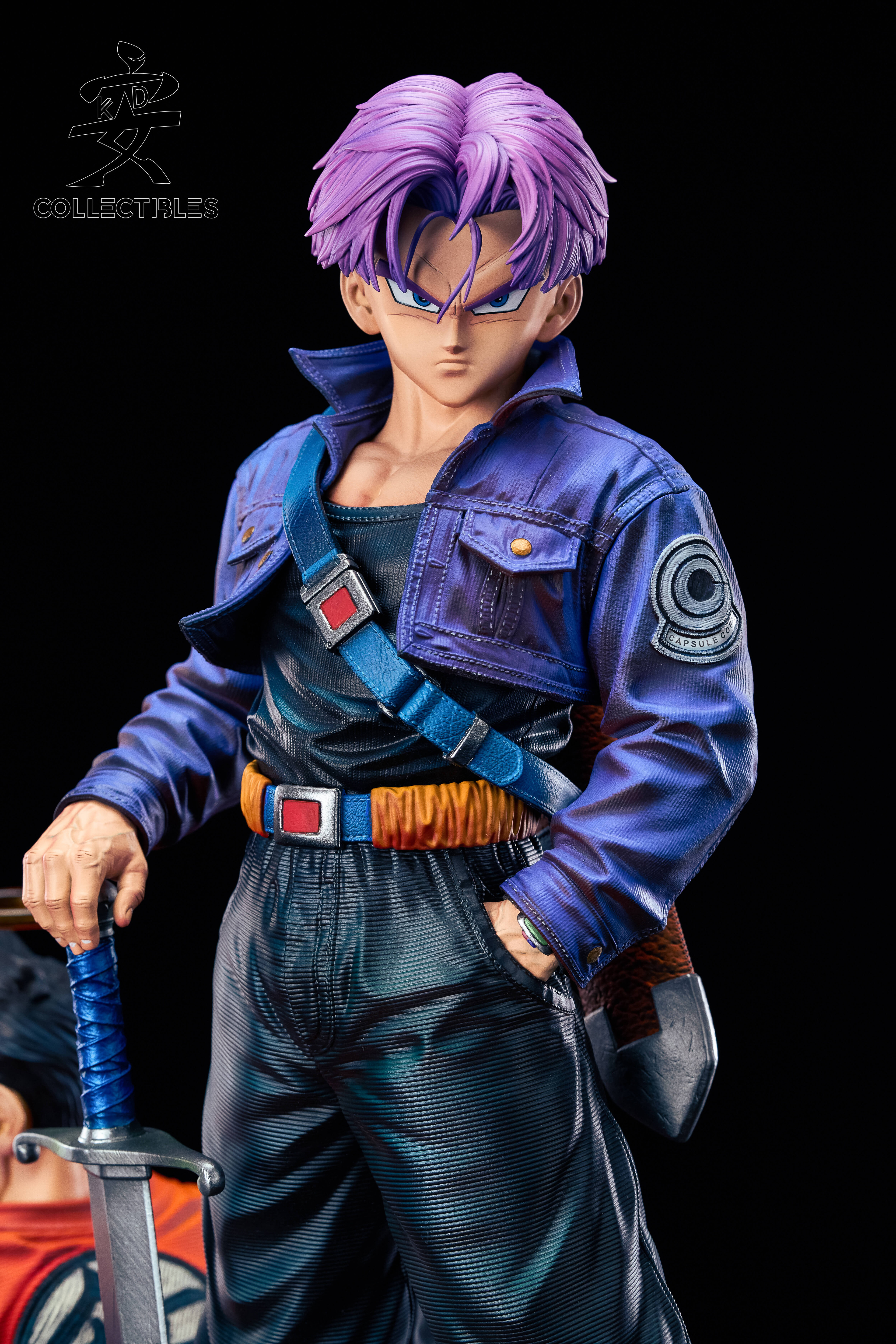 This diorama offers four display combinations, featuring interchangeable torsos and heads that allow Trunks to be displayed in multiple forms.