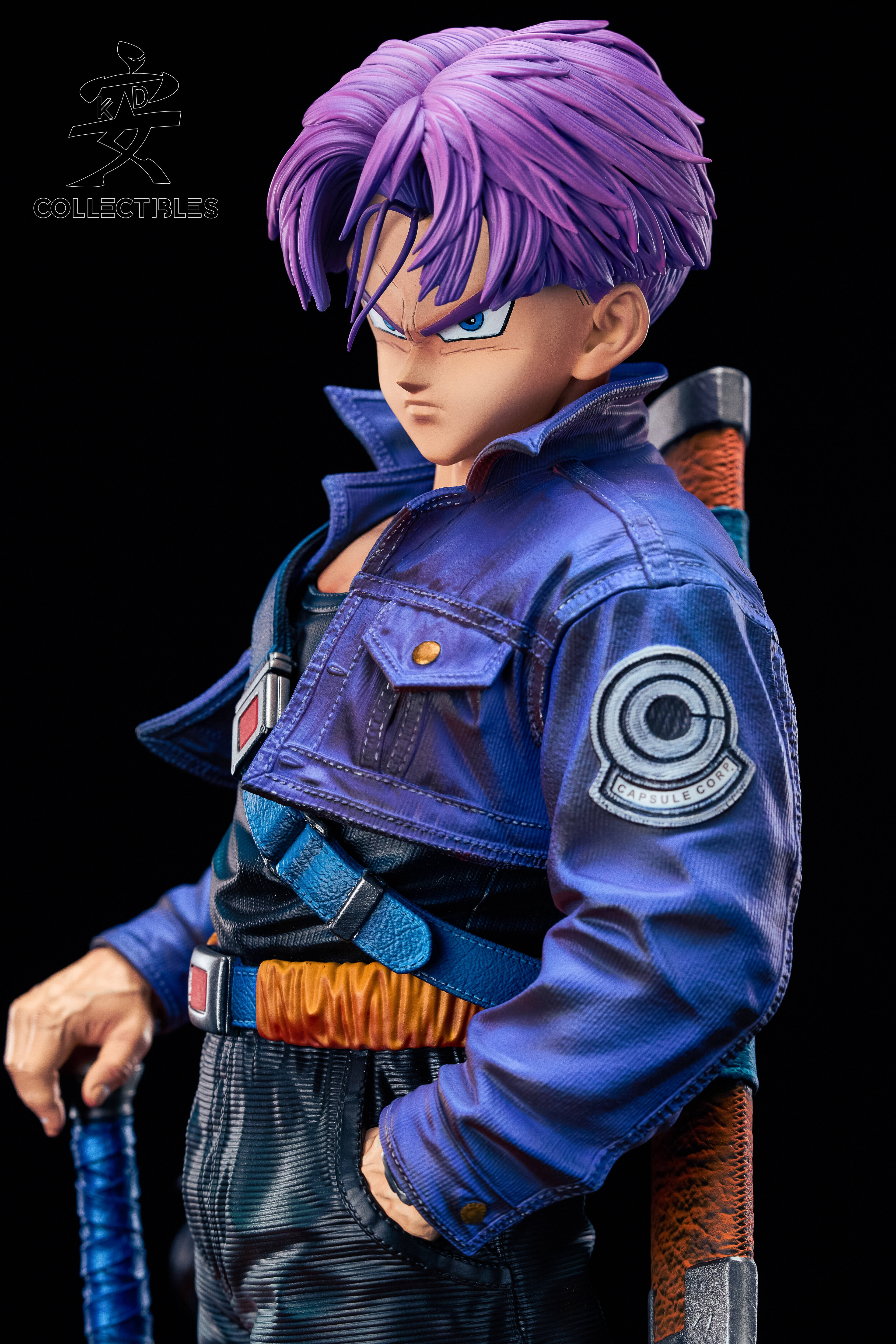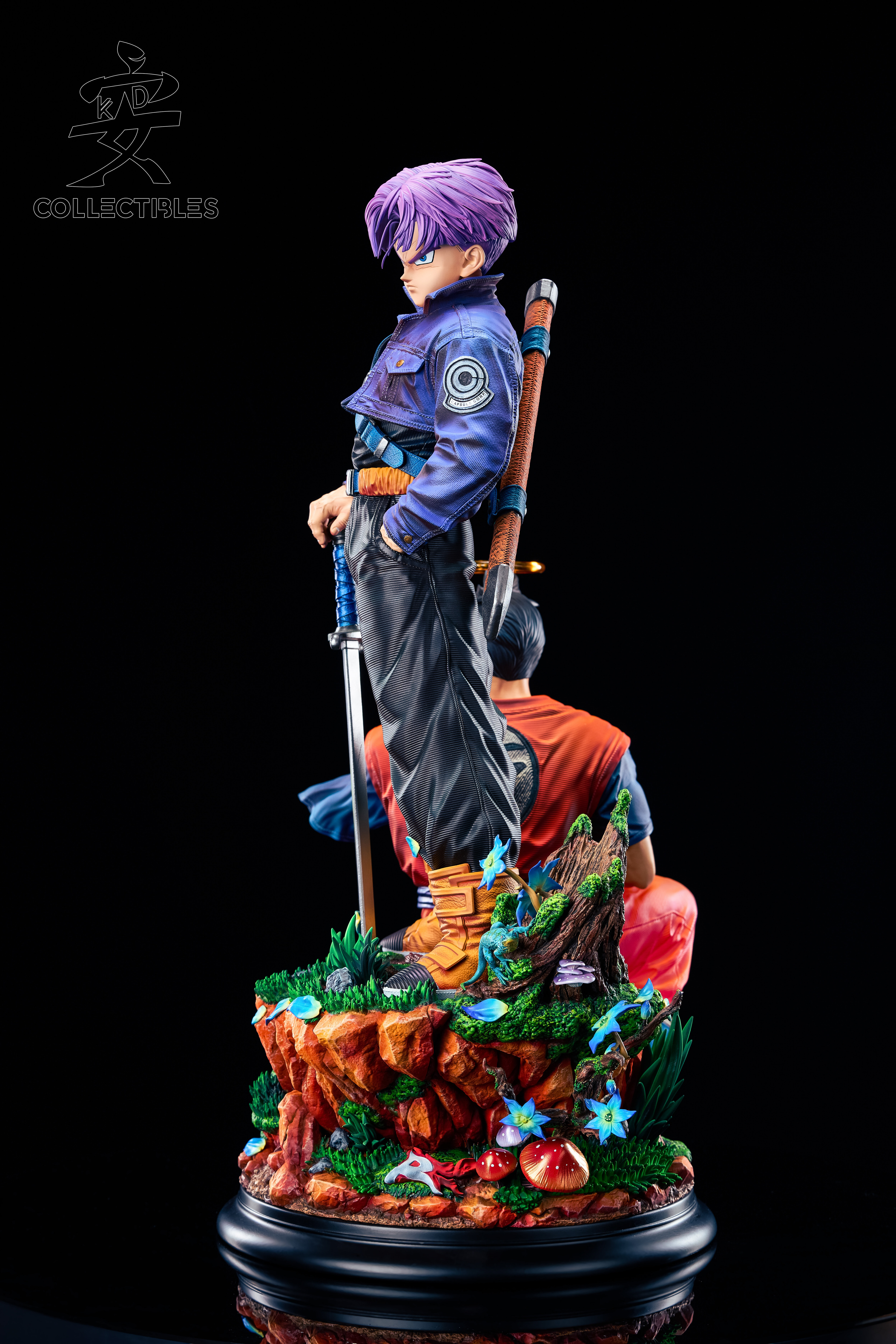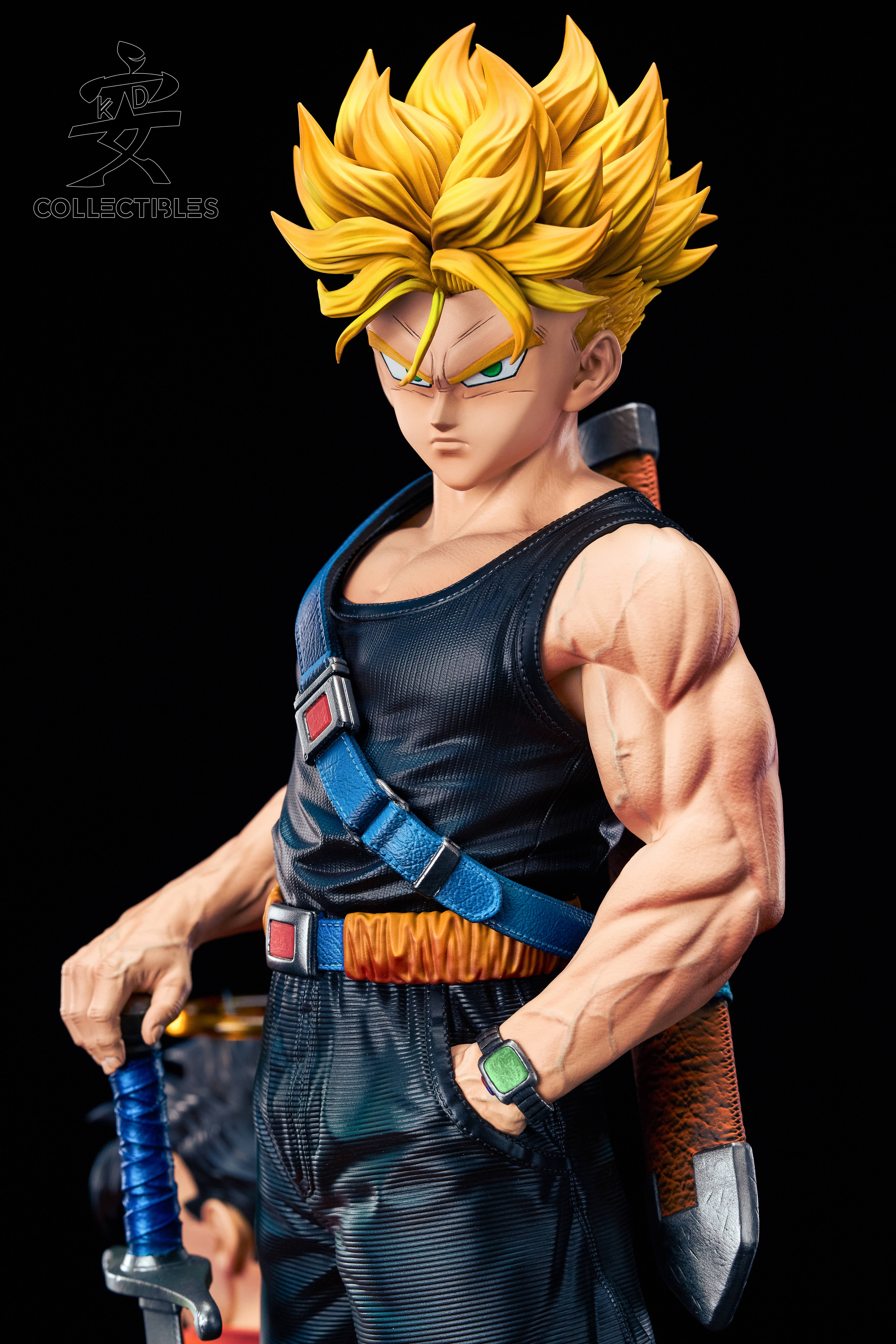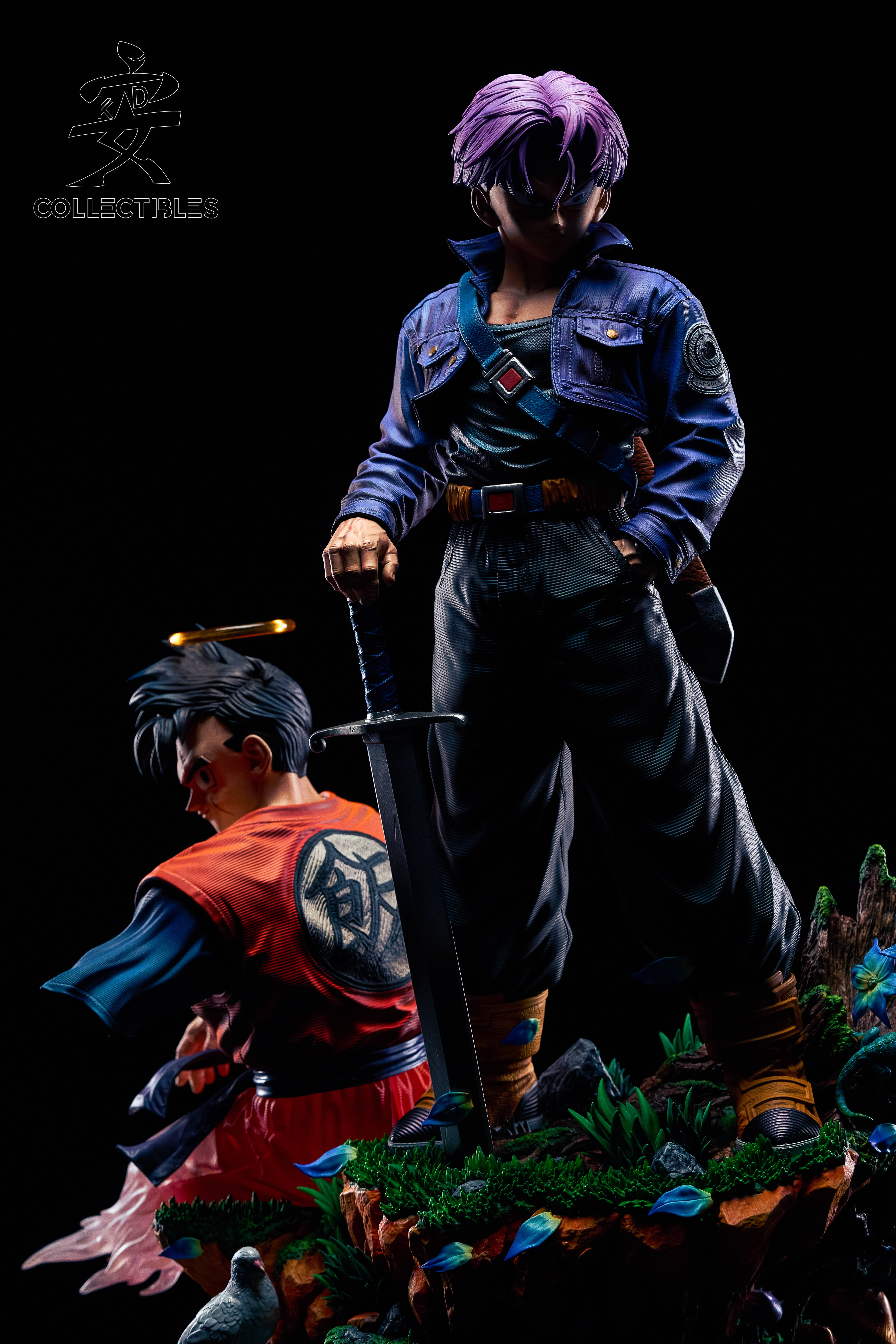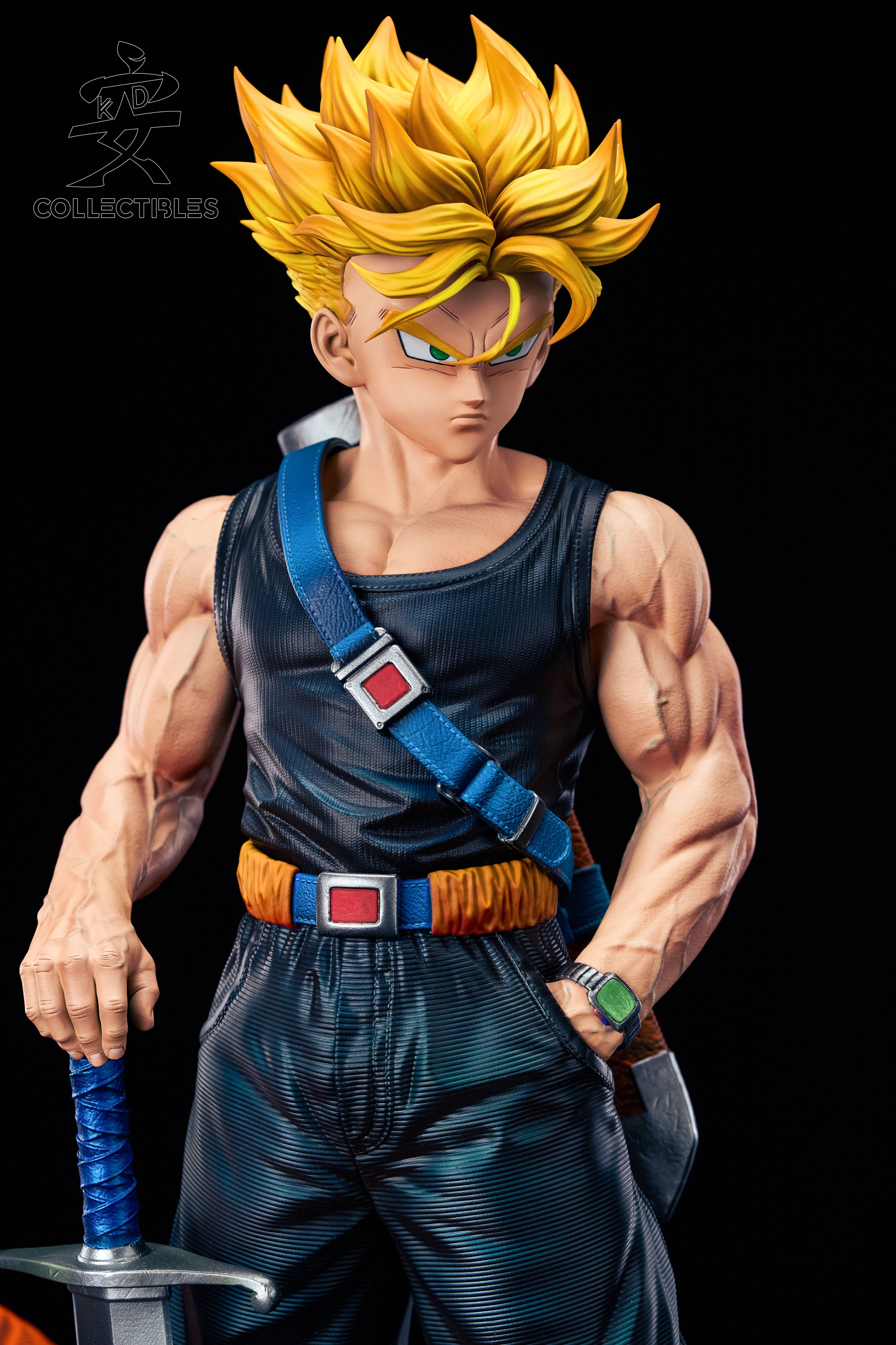 This diorama offers four display combinations, featuring interchangeable torsos and heads that allow Trunks to be displayed in multiple forms.
