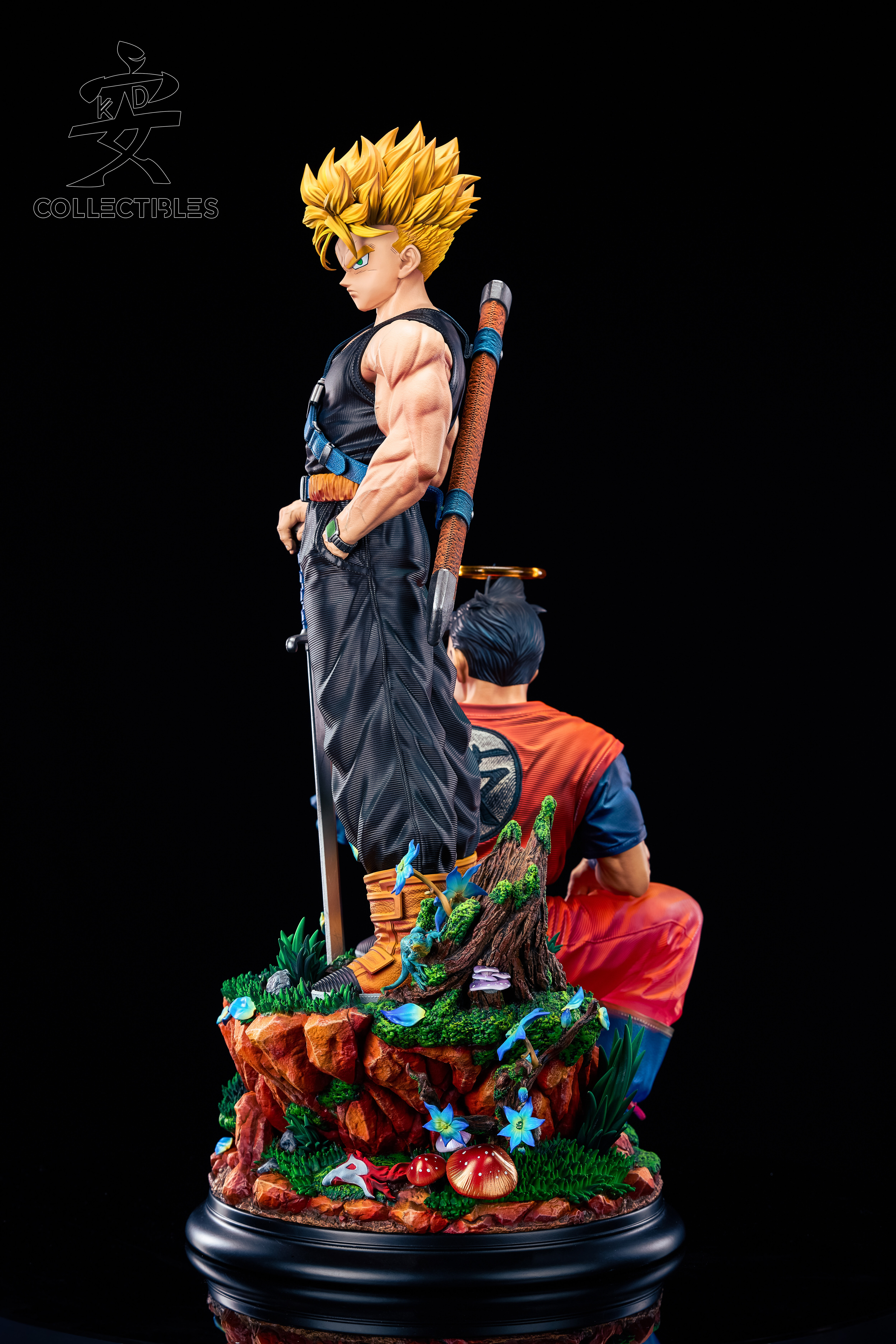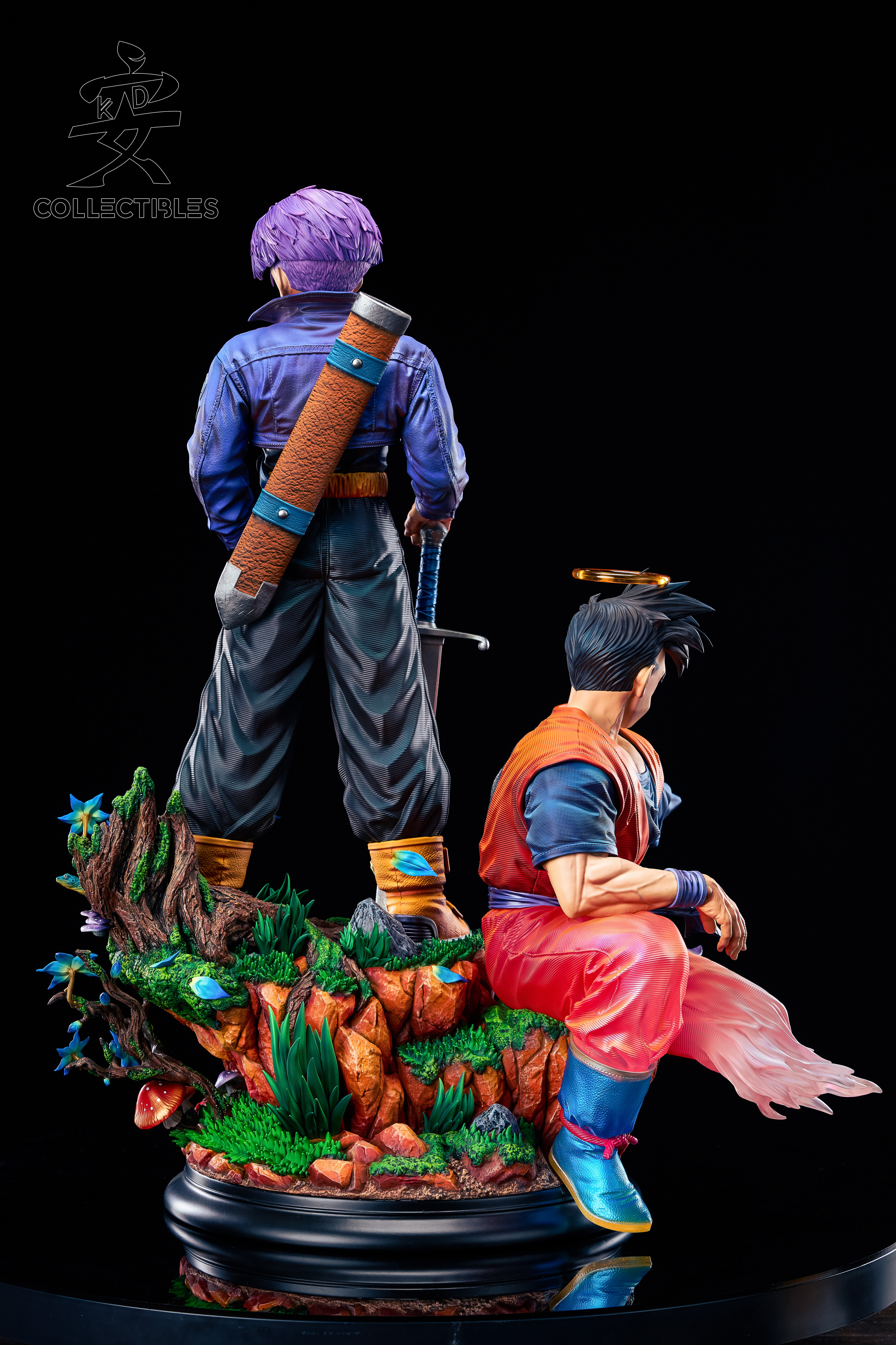 The flow between Trunks and Gohan is seamless, with Trunks’ grounded stance rising effortlessly into Gohan’s luminous form. Nothing feels static or disconnected — it’s a single, continuous motion frozen in time.